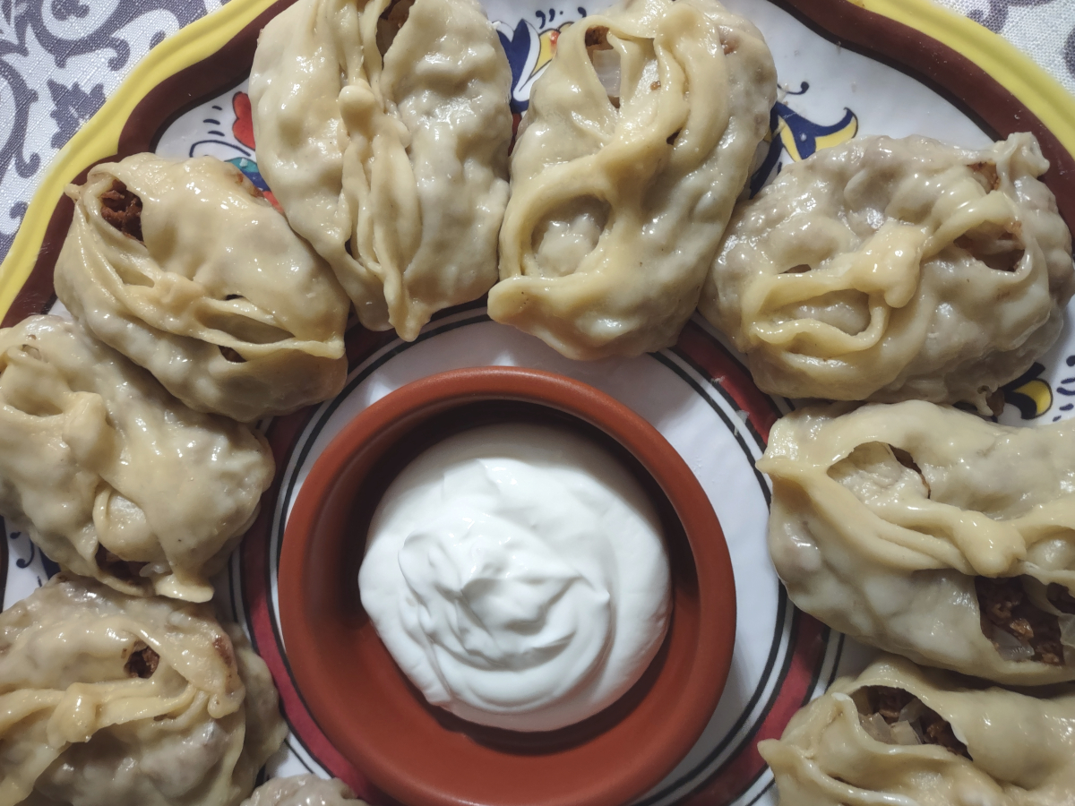Mänti: Steamed meat and onion dumplings topped with butter.