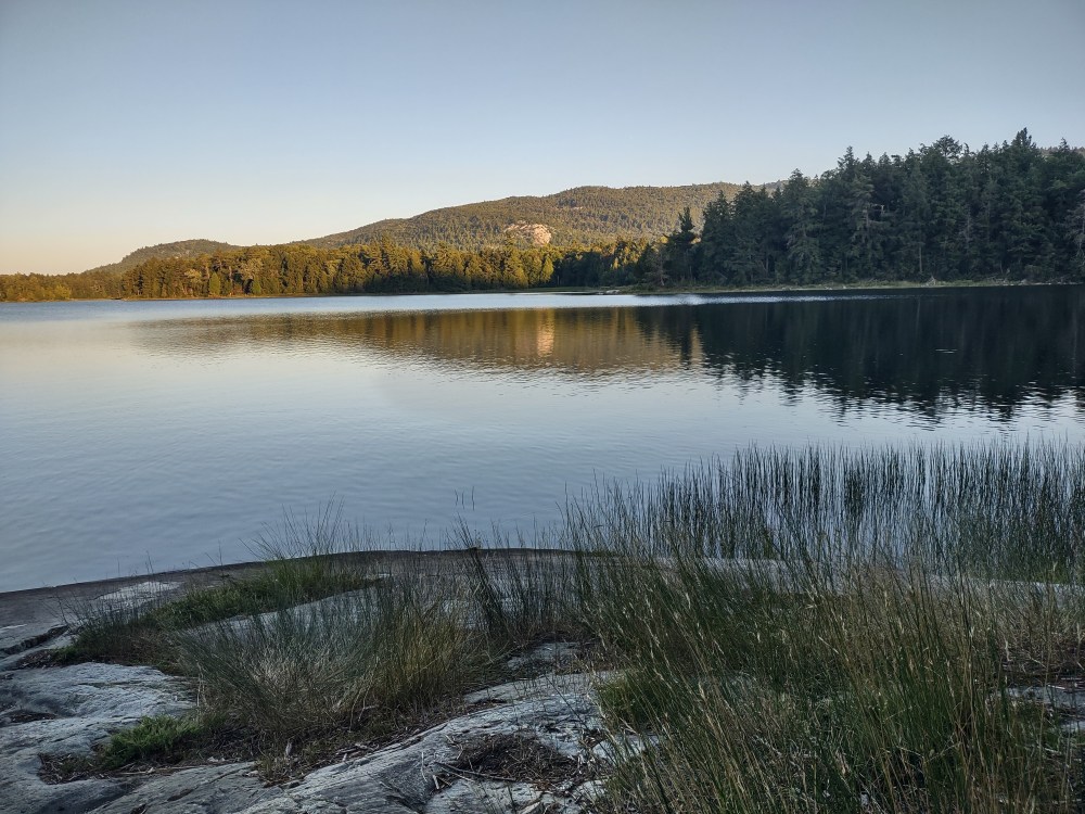 W was a solo hiker, celebrating his 60th birthday with an extravagant present to himself: a week of hiking. He was kind and welcoming, encouraging me to set up camp, cool off in the lake, and take in the views, which from up here, included a vista that stretched all the way to Georgian Bay. We compared equipment and itineraries. He was finishing tomorrow, too.
