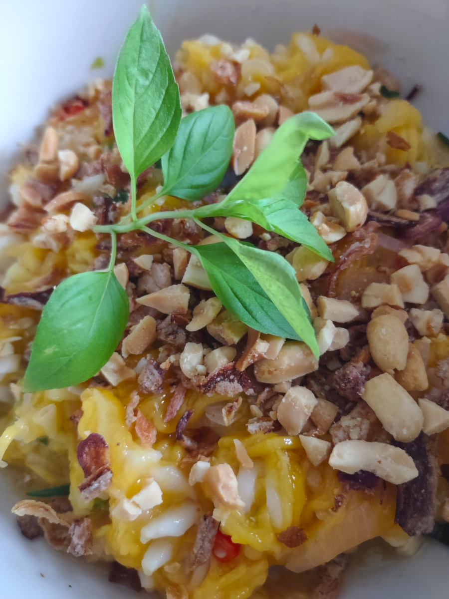 Signature flavours: Rice, seafood, egg, pork, chicken, fish sauce, basil, mint, cilantro, lemongrass, chili
