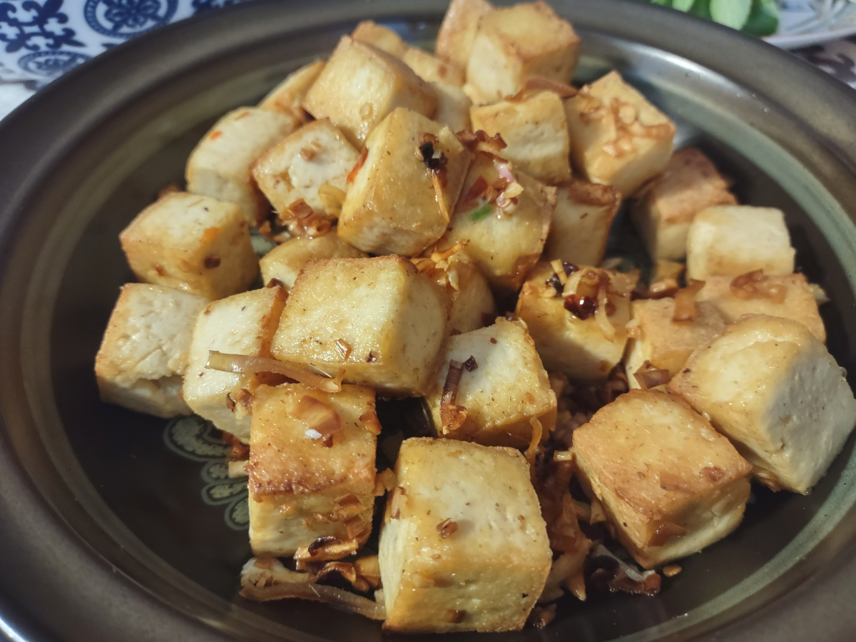 Đậu hũ chiên sả (Lemongrass Tofu): Crispy cubes of fried tofu tossed with salt, lemongrass, and plenty of garlic.